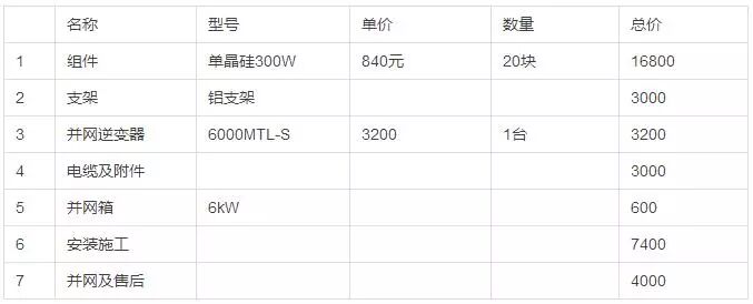 2018年主流组件是单晶300W,价格下降幅度较大,约2.8元每瓦,20块组件容量为6kW,逆变器价格也稍微下降,6kW约3200元,由于组件数量一样,支架费用一样,人工费逐年上涨少许,总费用约3.8万元,比2015年的5kW还便宜一些。