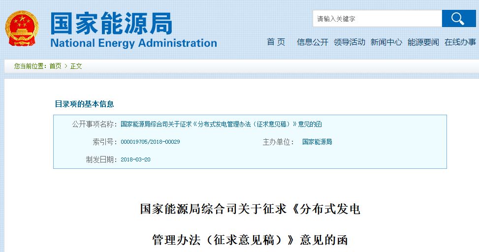 3月23日,国家能源局综合司关于征求《分布式发电管理办法(征求意见稿)》意见的函