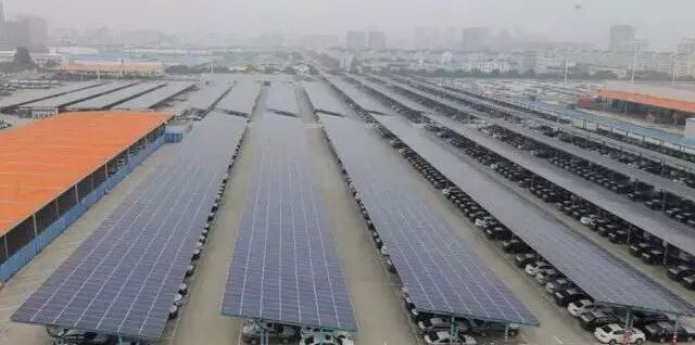 第一波、先欣赏下光伏组件安装在车棚之上的光伏车棚