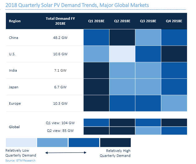 2018年季度全球主要市场太阳能光伏需求趋势预测