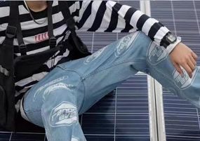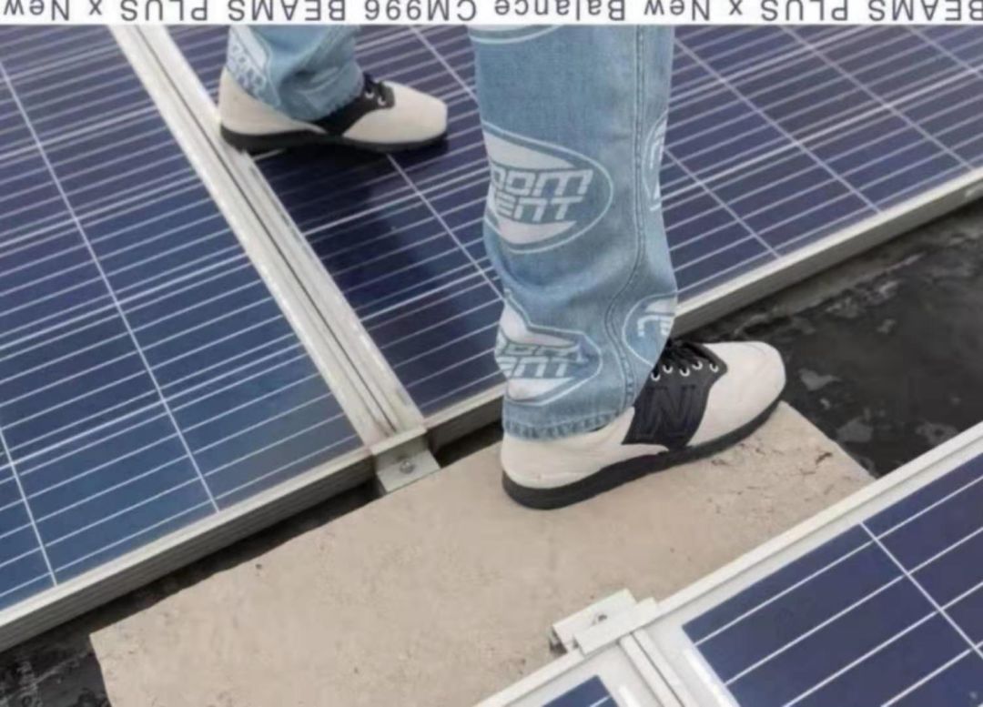 为了拍广告耍酷,有模特竟然将脚踩在光伏板上