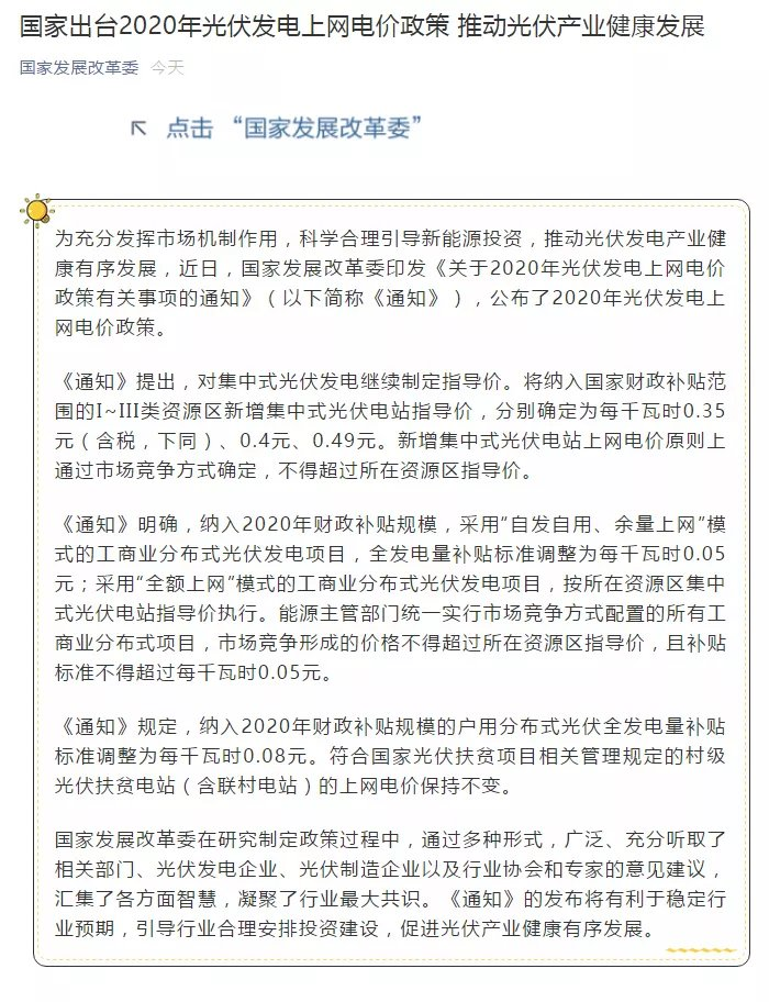 | 户用补贴8分/度,工商业5分/度!2020年光伏补贴标准出台! |