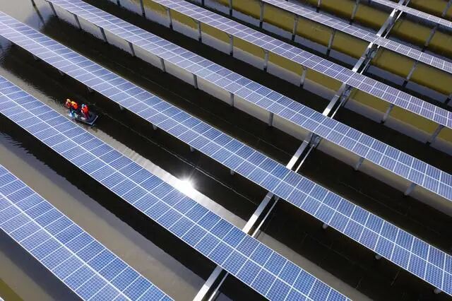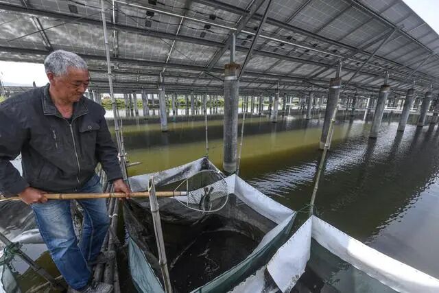 光伏板下的鲈鱼(来源:新华社)