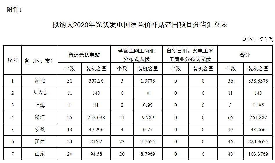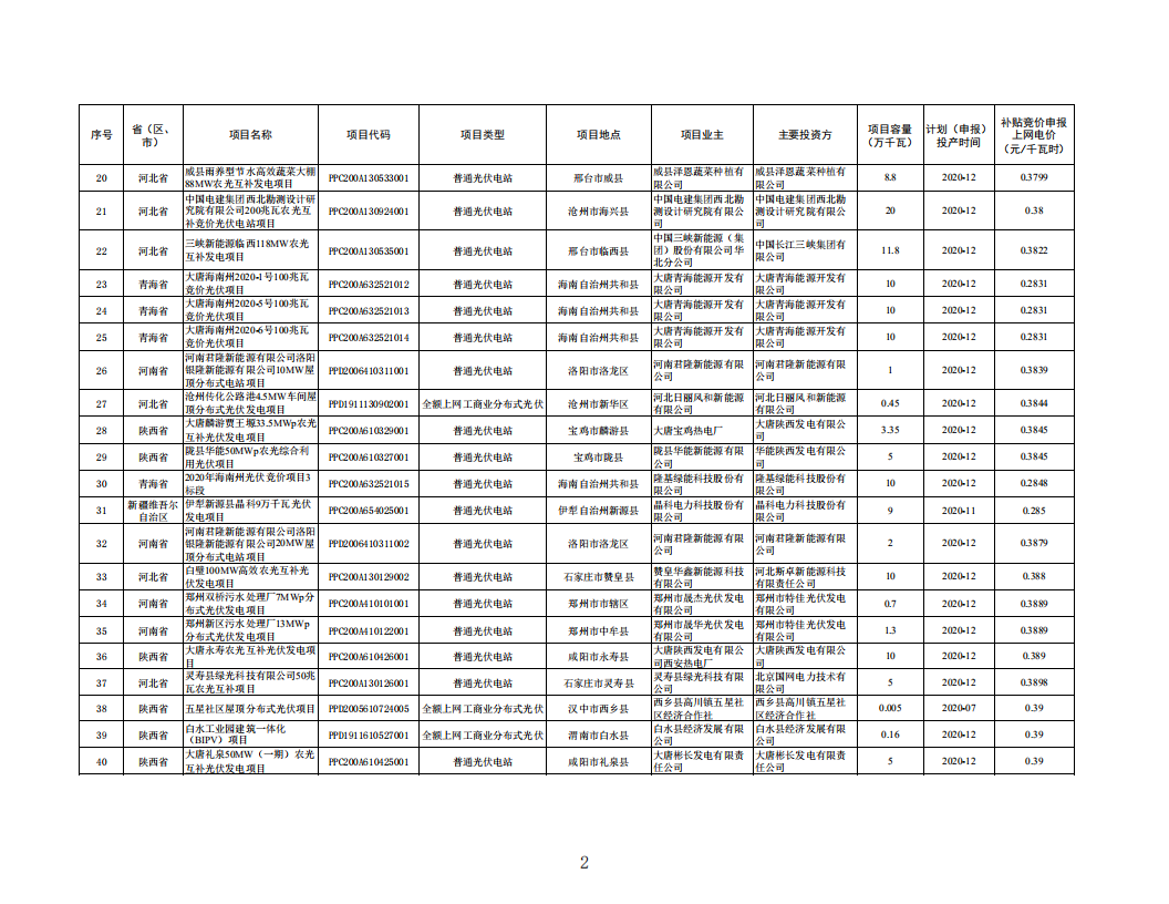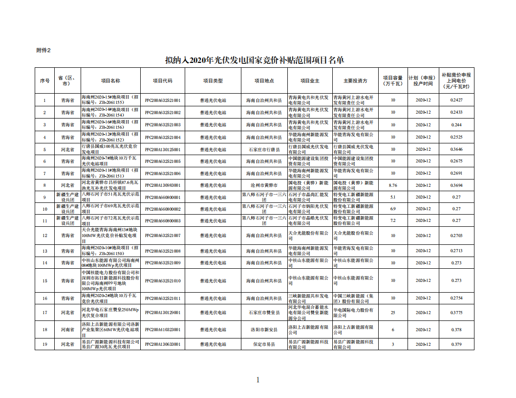 | 25.96GW!国家能源局公布2020年光伏项目竞价名单! |